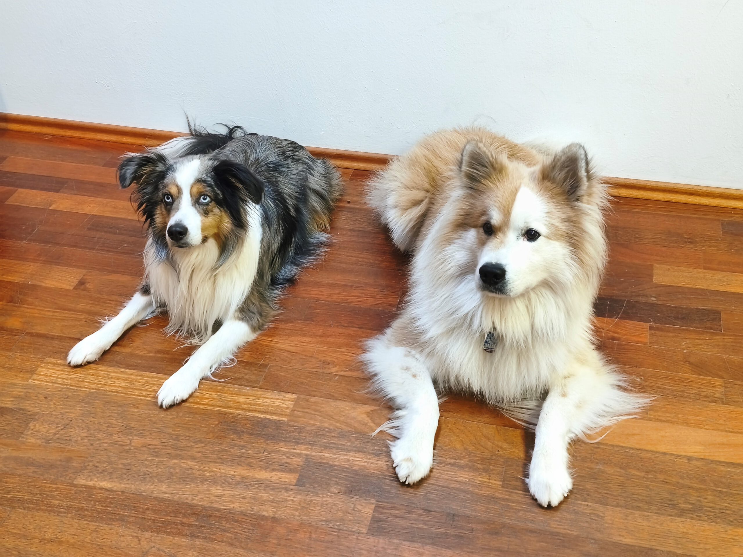 Unsere zwei Bürohunde Marlo und Nilo – stehen für Streicheleinheiten immer parat.