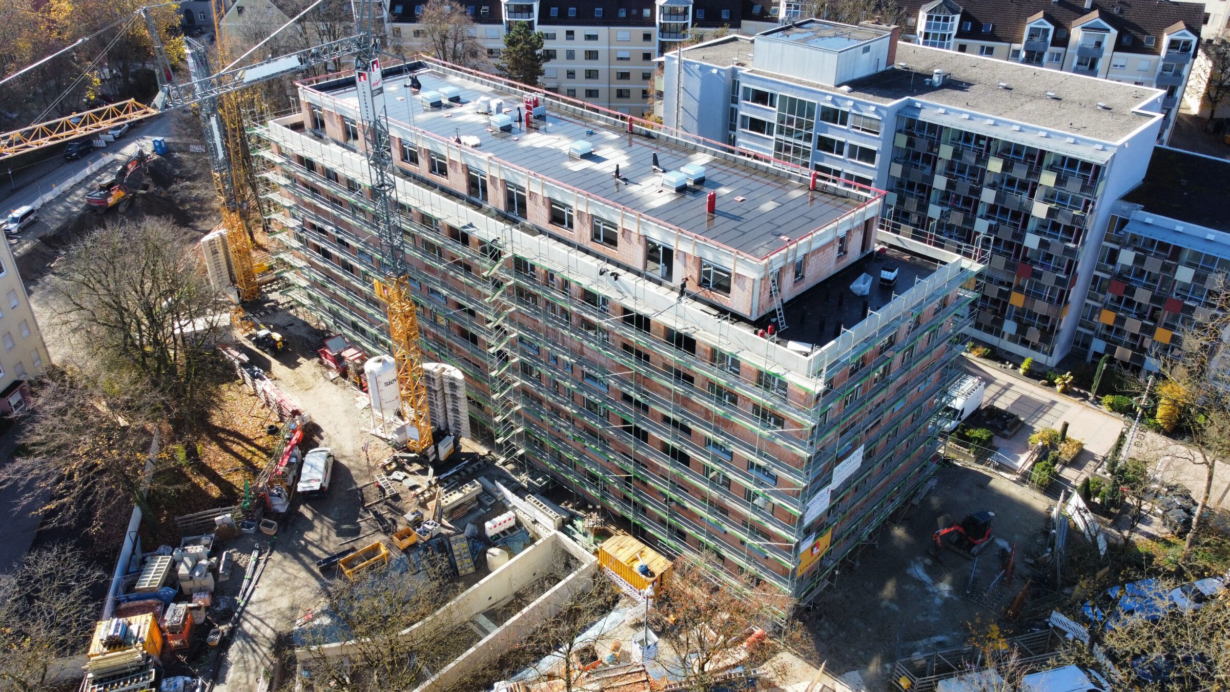 Der östliche Baukörper des Sparkassenaltenheims in Augsburg wird abgerissen und durch einen größeren Ersatzneubau mit ca. 70 Zimmern für altersgerechtes Wohnen ersetzt.